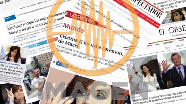 "Kirchner rompe negociaciones y no asistirá a la toma de Macri" y "Faltará Kirchner a la sucesión de Macri", indican los portales mexicanos Proceso y Reforma, respectivamente.