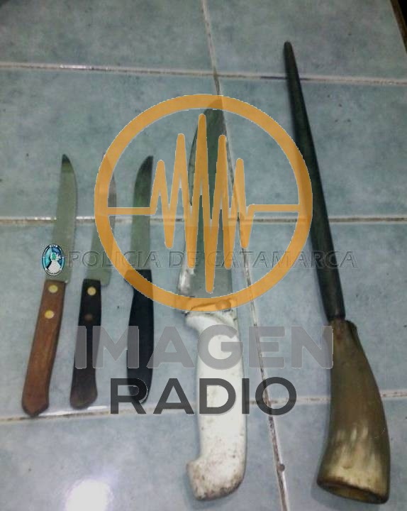 Mientras se desarrollaba el procedimiento, Juan Ramón Maldonado (21) y Angel Miguel Pacheco (21) habrían intentado lesionar al personal policial interviniente con tres cuchillos tipo tramontina, por lo que se procedió a la aprehensión de los violentos y se secuestró las armas blancas utilizadas por los revoltosos.