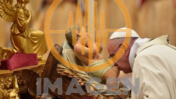 Al término de la eucaristía, Francisco depositó la imagen del Niño Jesús en un pesebre instalado dentro de la basílica.